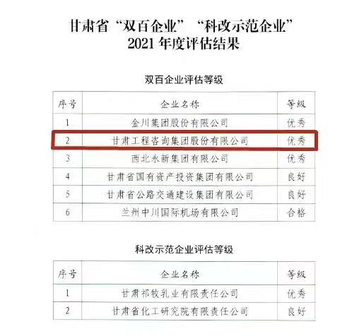 甘肃AG亚娱集团集团获甘肃省2021年度“双百企业”评估“优秀”品级