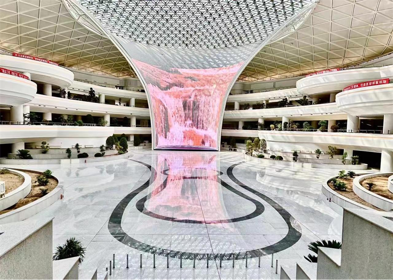 航站楼基础工程中井桩数量高达10181根,钢结构由3.8万个杆件拼装而成,需设置50多个吊装提升点,最大提升高度18米。