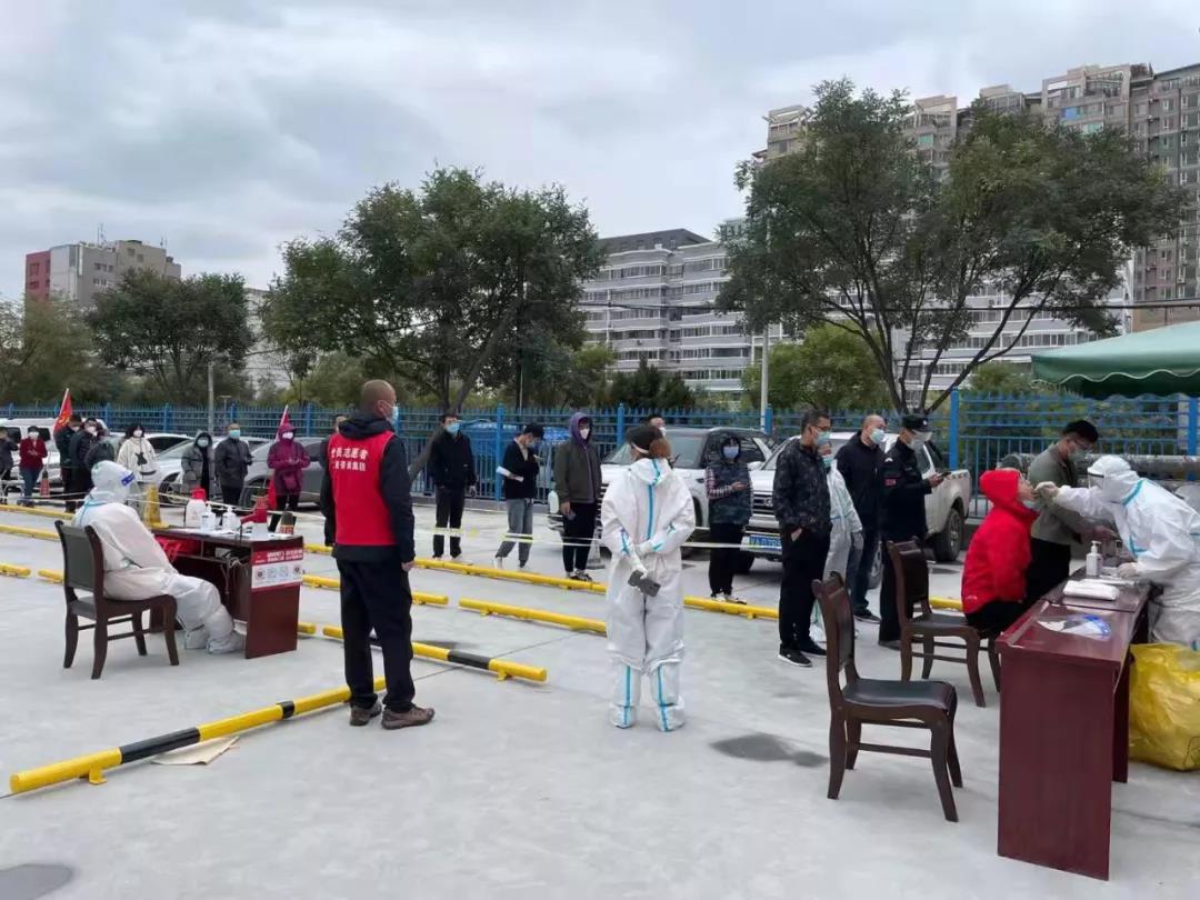 “您好”“请不要拥挤”“提前翻开健康码”……这是土木工程院的后勤治理部事情人员在有序指挥前来进行核酸检测的职工和家属。