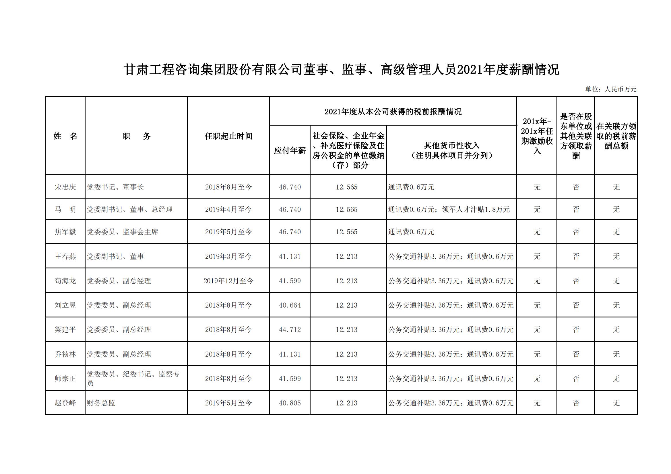 凭据《关于印发甘肃省省属国有企业卖力人薪酬治理步伐的通知》(甘人社通〔2021〕310号)相关要求,现将AG亚娱集团卖力人2021年度薪酬情况公示如下: