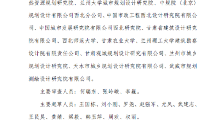 2021年3月,在国家尚未出台乡村计划技术标准和相关体例要求的情况下,受省自然资源厅委托,由城乡计划院起草主编的《甘肃省乡村计划体例导则(试行)》在全省规模内试行推广,明确了乡村计划事情组织方法及各级政府、部分职责,并对乡村现状调研、计划内容等提出了要求,实时为全省乡村计划体例事情提供了指导依据。