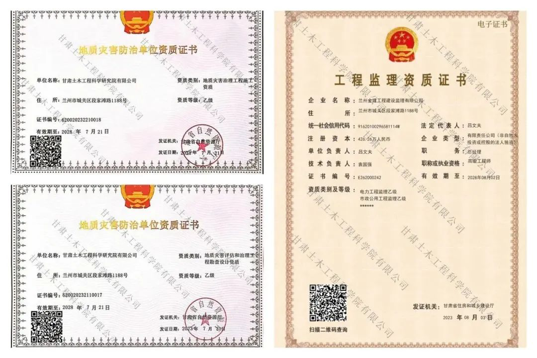 近期,土木工程院申报的地质灾害评估和治理工程勘查设计乙级、地质灾害治理工程施工乙级两项资质获省自然资源厅批准 。土木工程院全资子公司兰州金建工程建设监理有限公司申报的电力工程监理乙级资质也顺利通过省住房和城乡建设厅审批 。