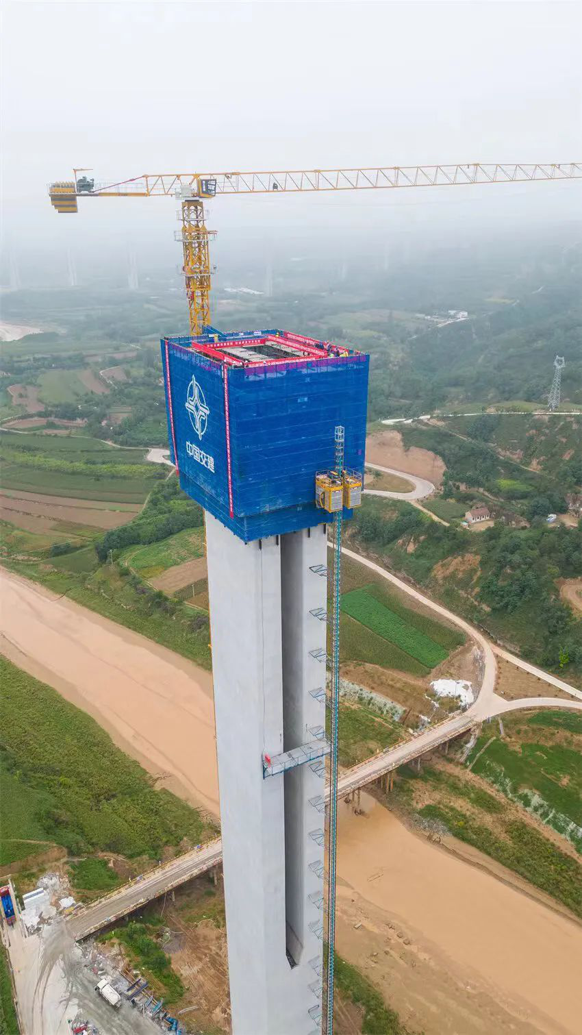 马莲河特大桥桥梁位于合水县西华池镇与何家畔镇交接处,跨越马莲河河谷,总长2208m,主桥桥长1400m,桥宽25.5m。沟谷最低处至桥面最大高差为196m,16#主墩墩身最大高度178米,墩身共计使用钢筋2258.721吨,C50混凝土11431.9m?。该桥系目前海内黄土地区在建跨度最大、墩柱最高、联跨最长的矮塔斜拉桥。