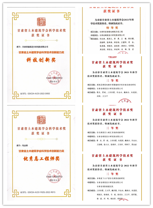 近日,从甘肃省建设行业科技立异结果研讨会暨颁奖仪式上传来喜讯:省建筑设计院被授予“科技立异奖”,设计的甘肃科技馆荣获“绿色建筑示范工程特等奖”,开展的“住宅建筑引入碳汇系统的立异研究”“多维度下小户型住宅建筑立异研究”“超高层建筑电梯井道隔墙的井道多效化结构研究”等研究荣获“2022年科学技术奖三等奖”;冯志涛荣获“优秀总工程师奖”,上官存霞等8人划分获得“第四届中西部地区土木工程师(建筑师)”“科技孝敬奖”“科技英才奖”。