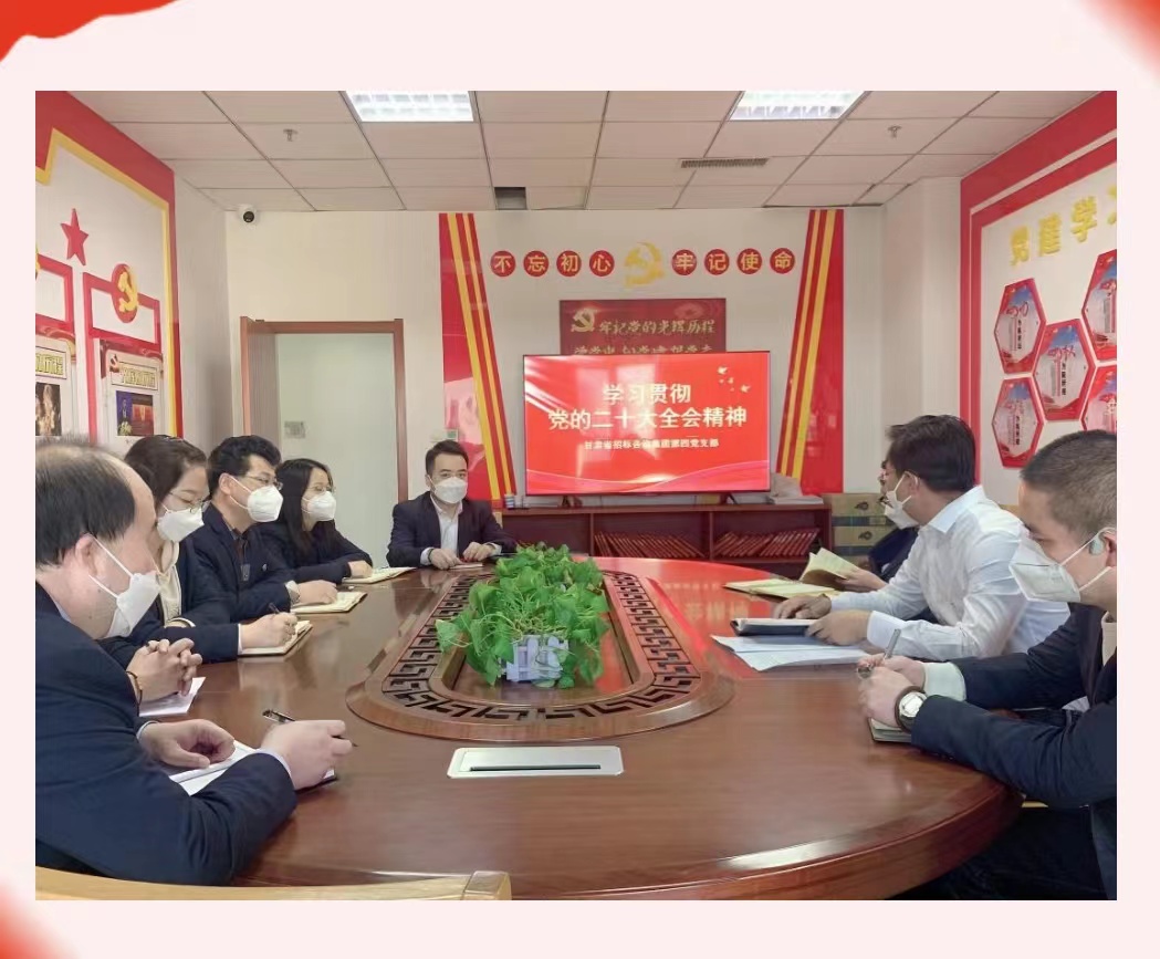 党的二十大胜利召开以来 ,甘肃省招标咨询集团有限责任公司党委高度重视 ,将学习宣传贯彻党的二十大精神作为目今和今后一个时期的首要政治任务 ,通过多形式、全笼罩的方法 ,积极抓好贯彻落实 ,连续推动党的二十大精神转化为加速各项事情高质量生长的强大动力 ,努力促使党的二十大精神在招标咨询集团迅速落地生根、开花结果。